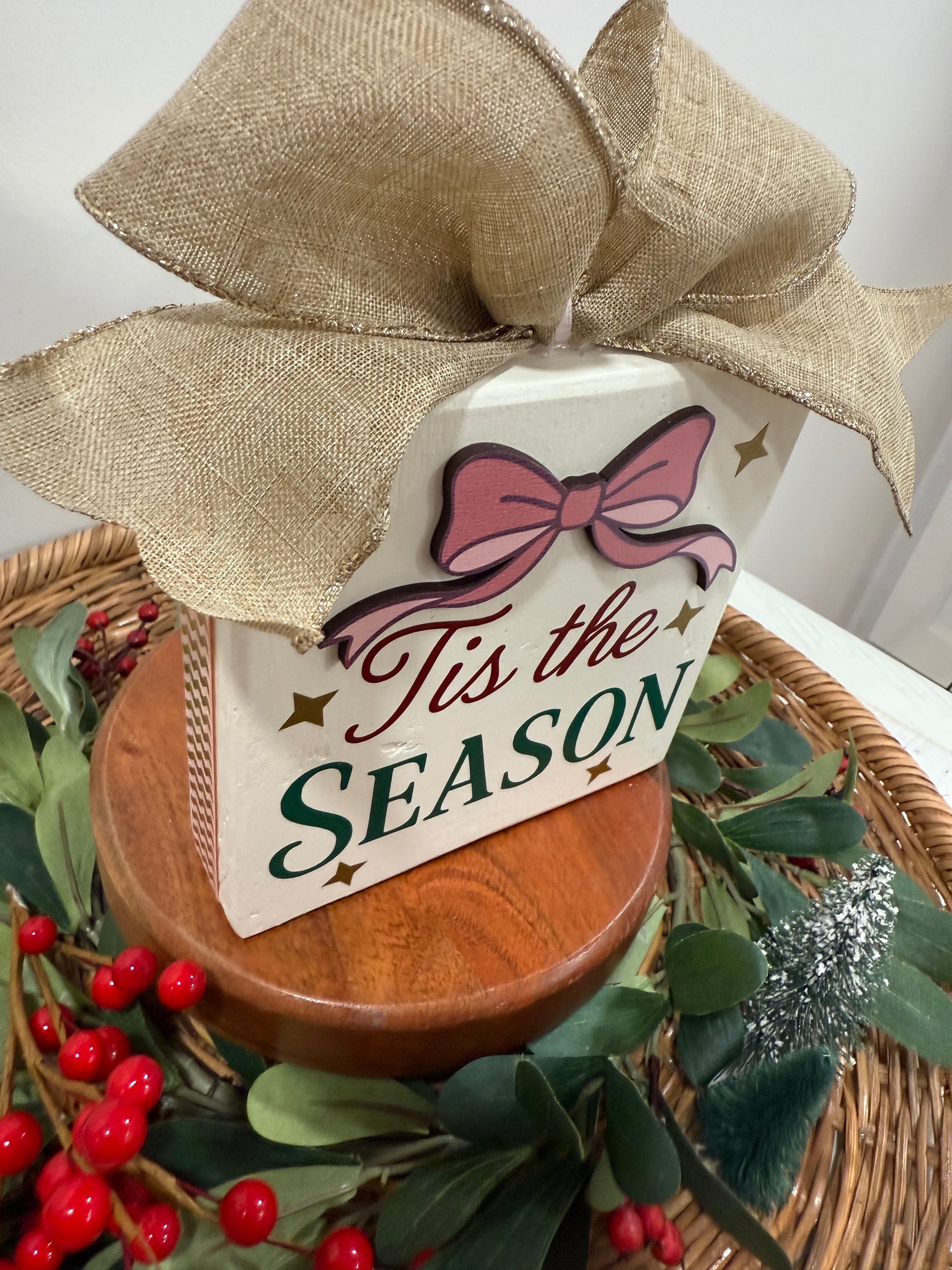 Celebrate the magic of the holidays with our charming 3D "Tis the Season" block featuring a stunning 3D bow! This beautifully crafted decoration adds a festive touch to any space, making it the perfect centerpiece for your seasonal decor. Whether displayed on a mantle, table, or shelf, this eye-catching design is sure to bring holiday cheer to your home.