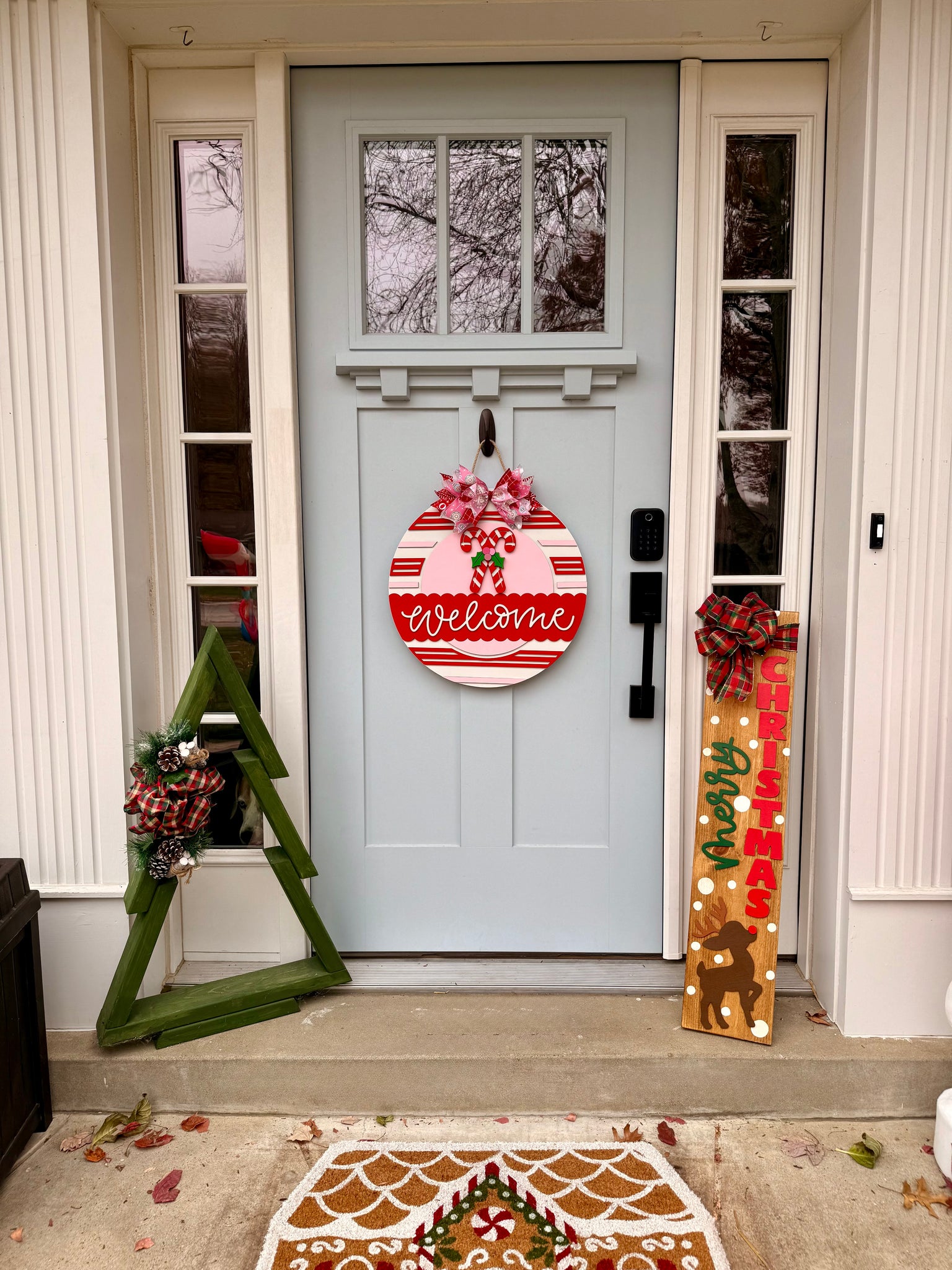 Add a touch of sweet holiday charm to your front door with our whimsical wooden door hanger, available in both 15” and 18” round sizes. Handcrafted in pink and red tones and adorned with playful candy canes, this festive door sign is perfect for Christmas decor lovers who want something fun, bright, and unique. Lightweight, durable, and ready to hang, it brings instant seasonal cheer to entryways, porches, and indoor spaces alike. Ideal for holiday home décor, gift giving, and anyone who loves candy-themed Christmas accents.